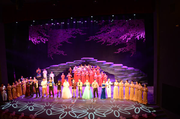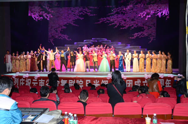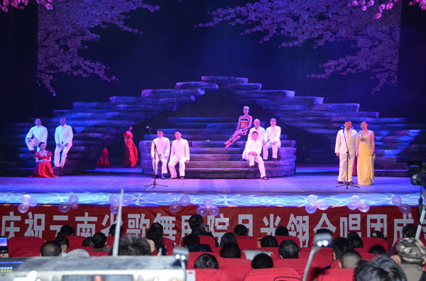 云南省歌舞剧院月光翎合唱团在2014年11月22日中午14:00时在省歌舞剧院一楼《梦幻剧场》举行一周年庆典活动,取得了圆满成功。云南省歌舞剧院月光翎合唱团的成立于2013年10月,合唱团招收热爱合唱艺术、声乐表演、具有一定声乐潜质的人士、社会各行各业的歌唱爱好者加入。利用业余时间参加了我们每周两次排练。省歌舞剧院院长陶春先生亲自担任团长,为云南省歌舞剧院月光翎合唱团的组建发展做了长期的规划。昆明月光翎文化传播有限公司总经理李晓玉担任云南省歌舞剧院月光翎合唱团副团长。她冲着对声乐的热爱,对合唱团的工作进行了实质性的落实。本合唱团特邀请云南省歌舞剧院独唱,青年男高音歌唱家,国家二级演员、程龑担任本合唱团的总指挥。有这么好的声乐演唱平台,打造那么好的团队,我们的明天更美好,我们组织了《共圆中国梦》省歌合唱团周年庆典。