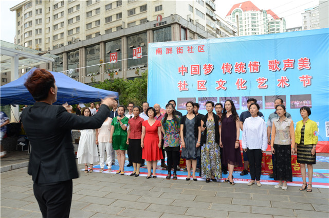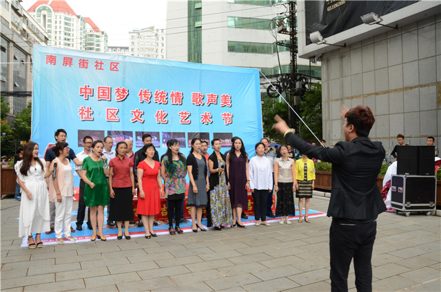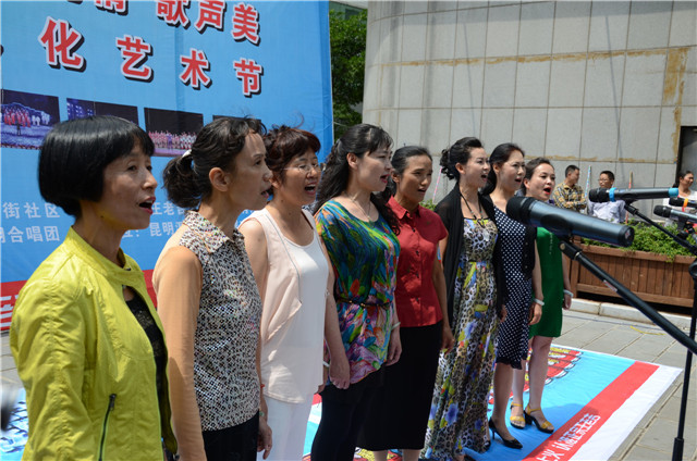 六月十九日云南省歌舞剧院月光翎合唱团联合南屏社区在南屏街东口世纪广场,为南屏社区居民、来往的行人游客带来了一场别开生面的、精彩绝伦的社区文艺汇演——“中国梦 传统情 歌声美”南屏街第三届社区文化艺术节。