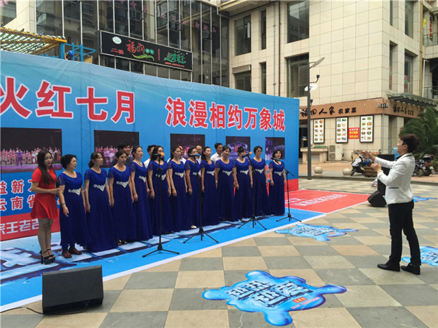 继“第四届中国聂耳音乐周”之后,7月26日云南省歌舞剧院月光翎合唱团在益新·万象进行了“火红七月 浪漫相约——万象城”的社区第三场活动,连续阴沉了好几天的昆明终于在7月26日放晴了。