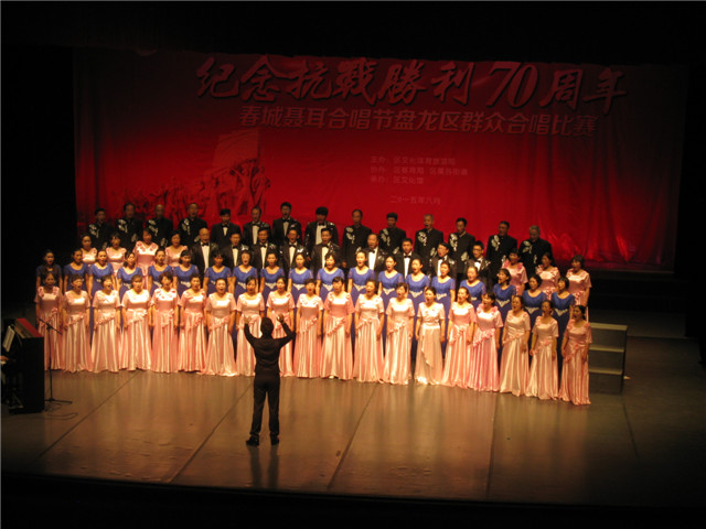 云南省歌舞剧院月光翎合唱团参加“纪念抗战胜利70周年春城聂耳合唱节盘龙区群众合唱比赛”荣获第一名!