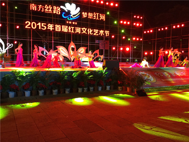 艺术剧团在红河广场表演,演出当晚的盛况可谓是:舞台上激情四射、魅力无限;演出美轮美奂、精彩绝伦。