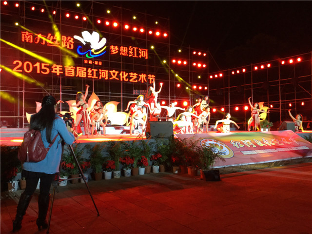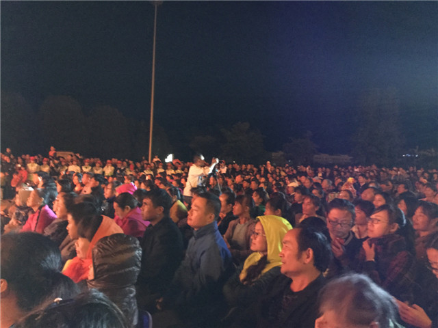 11月14日晚红河广场露天舞台演出,台下聚集了大批的观众: