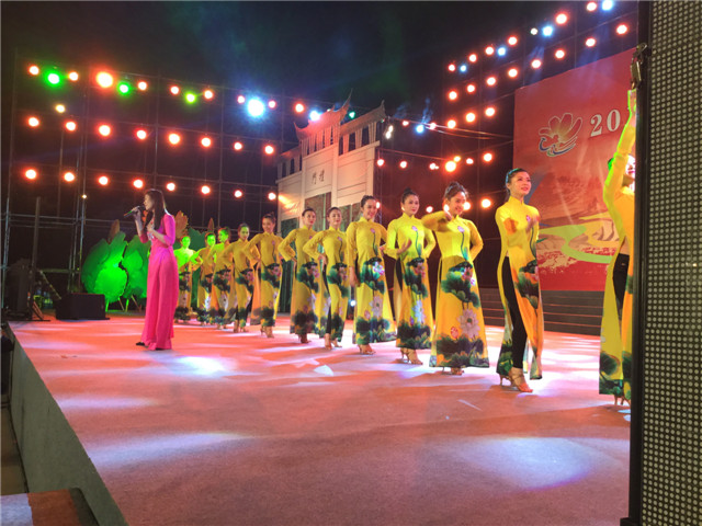 在云南省红河哈尼族彝族自治州首届红河文化艺术节上举行越南国家当代艺术团演出专场晚会,越南演员们在红河广场,红河大剧院和建水县为观众献上了三台独具特色的《越南香色》精彩演出。其中的舞蹈配上背景灯光和烟幕,加上高颜值的演员出场,让观众宛若仙子在云中漫步。
