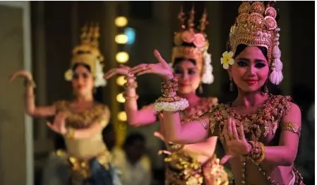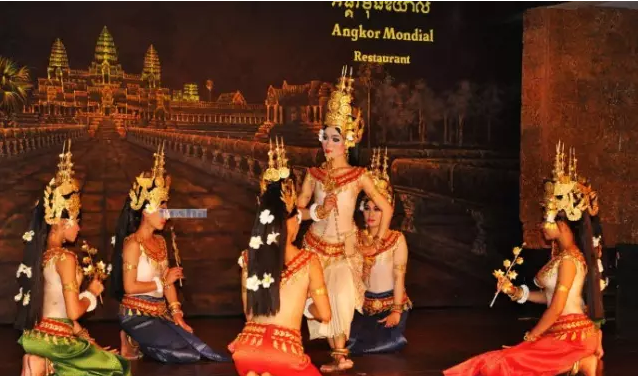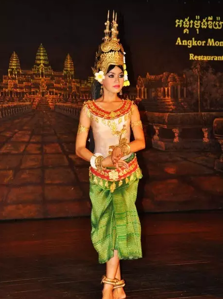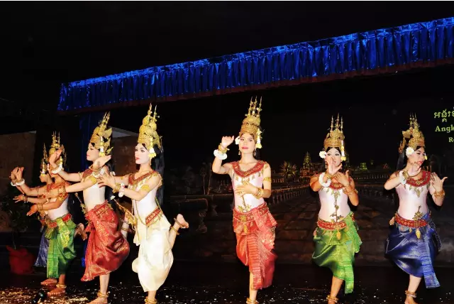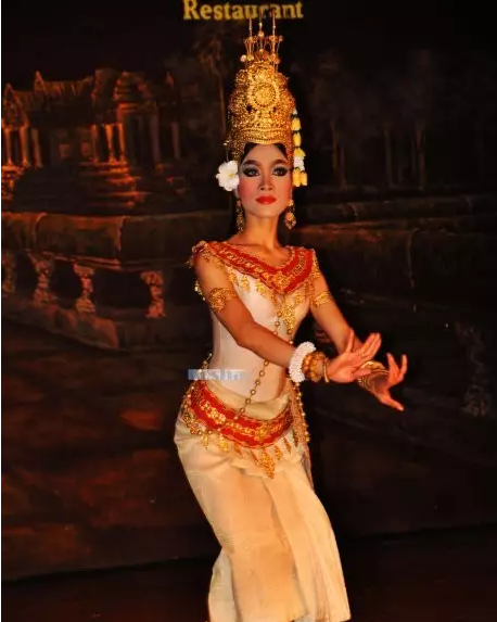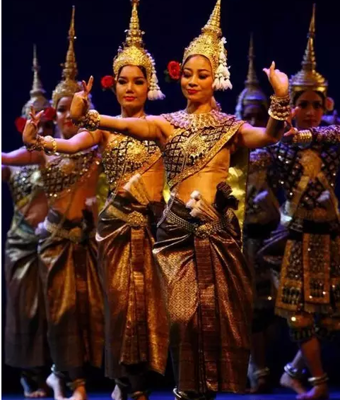 柬埔寨皇家舞剧院表演的皇家舞蹈,也叫高棉古典舞,与高棉宫廷紧密相连,已经有1000多年的渊源。这种舞蹈以其优雅的手势和色彩艳丽的服饰而著称。