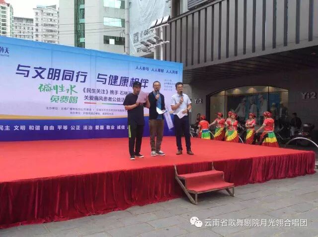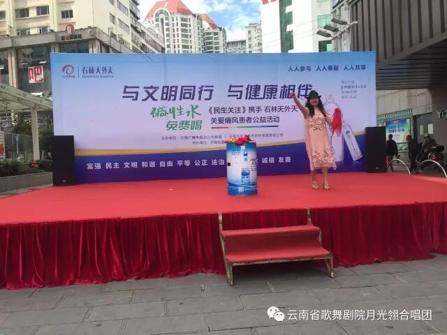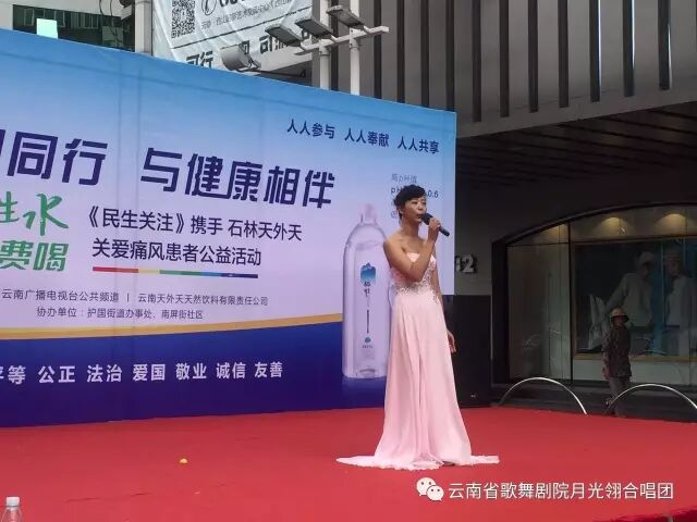 省歌月光翎合唱团携手《民生关注》栏目和石林天外天纯净水公益演出