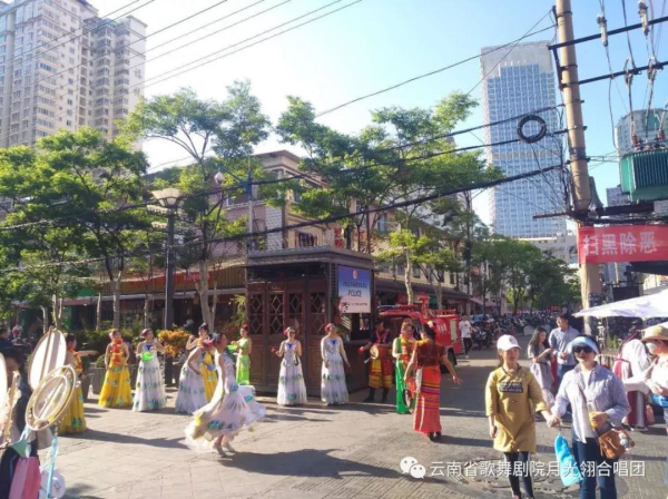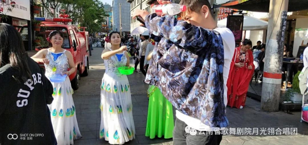 今年的泼水节,云南省歌舞剧院月光翎合唱团组织了以歌舞的形式来到南强街,精心准备了泼水活动,歌舞和打跳,合唱团员们为了参与这个活动,提前了两周排练,进行了学习傣族泼水节的打跳,只为了为大家带来不一样的泼水节祝福。