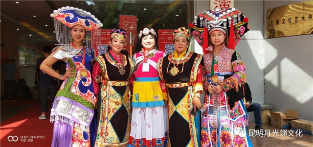 月光翎文化的王艺洁为此次的演出工作写了好几天的主持词,不仅要让内容丰富,悦耳动听,也要符合这次演出活动的主题,没日没夜地在为这个主持词不停地写,不停地修改,最终领导查阅了之后,满意为止。吴珊珊和邱一珈为了能够让所有到场的参演的老年同志们和干部们赏心悦目,她们穿着云南少数民族盛装和头饰,坚持在太阳下,为到场的所有人员服务,并提供发放保障用水。